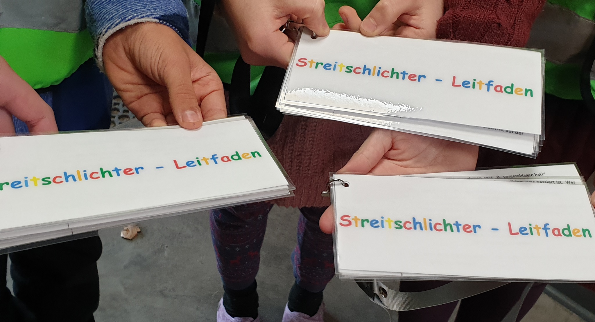 Im zweiten Halbjahr des dritten Schuljahres habe die Schülerinnen und Schüler die Möglichkeit, an der Streitschlichter/innen-Ausbildung teilzunehmen. Durchgeführt wird der Kurs durch die Sozialpädagogin Frau Schridde-Ratay.